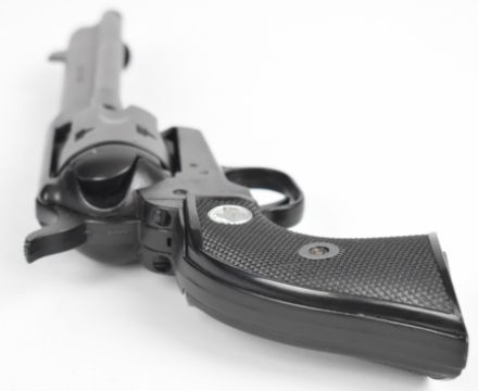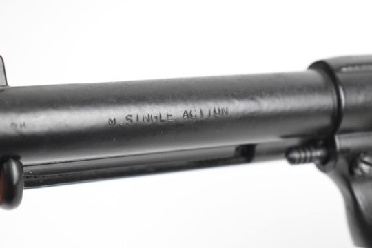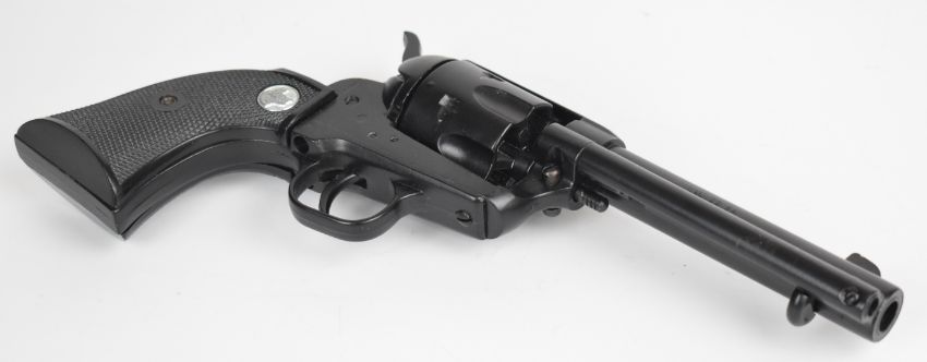 Gun Toys SRL six-shot single action blank firing revolver with shaped wooden grips and 5 inch barrel, overall length 28.5cm.