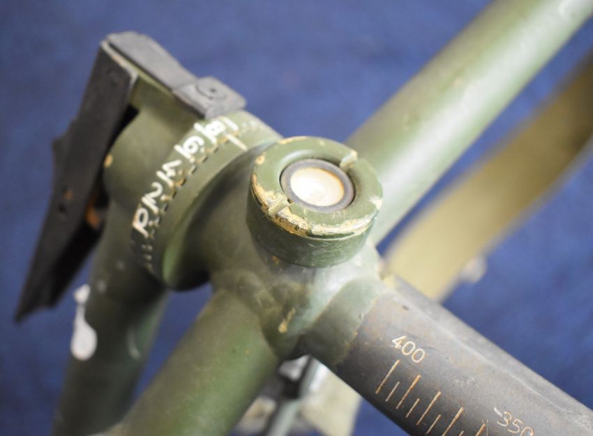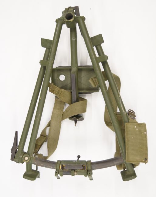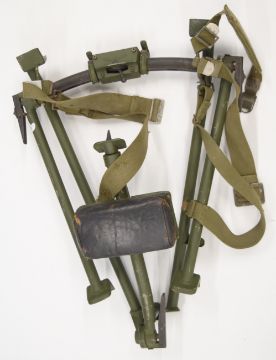 Lafette or similar military light machine gun tripod with adjustable legs and mounts, 110x60cm.