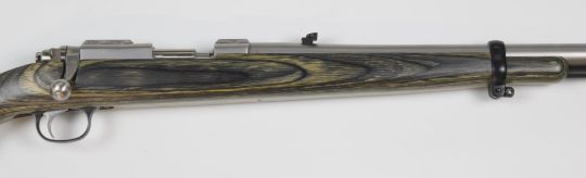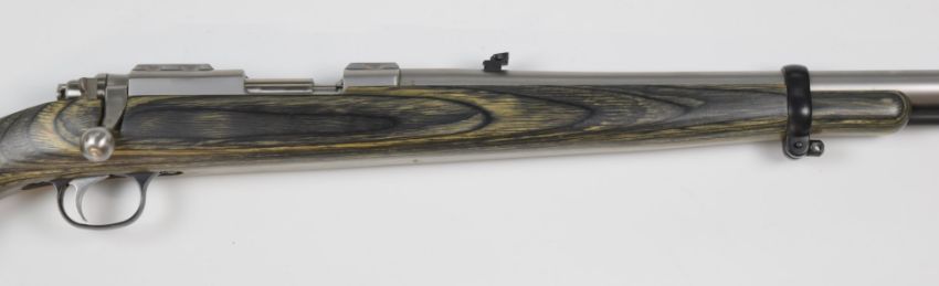 Ruger All-Weather 77/50 .50 bolt-action rifle with laminated show wood stock, semi-pistol grip, sling mounts, scope rails, cleaning rod, adjustable pop-up sights and 22 inch barrel, overall length 106cm, serial number 730-08490. PLEASE NOTE THAT A VALID RELEVANT FIREARMS/SHOTGUN CERTIFICATE IS REQUIRED TO HANDLE/PURCHASE THIS ITEM.