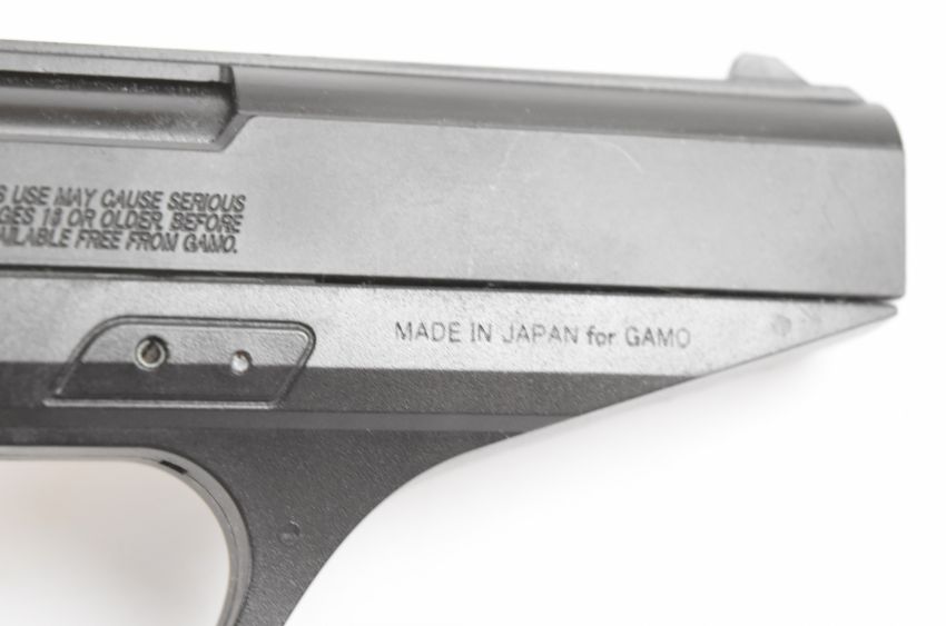 Gamo P-25 Blowback .177 CO2 air pistol with composite grips and fixed sights, serial number 18D012673, in original box with instructions.