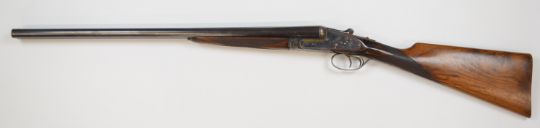 Union Armera of Eibar Spain 12 bore side by side sidelock ejector shotgun with engraved locks, underside, trigger guard, top plate, thumb lever and fences, chequered grip and forend, double trigger and named 26 inch barrels choked full and ½, overall length 111cm, length of pull 38cm, serial number 23149. PLEASE NOTE THAT A VALID RELEVANT FIREARMS/SHOTGUN CERTIFICATE IS REQUIRED TO HANDLE/PURCHASE THIS ITEM.