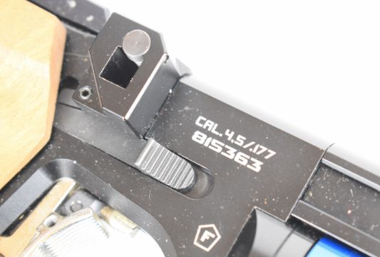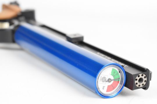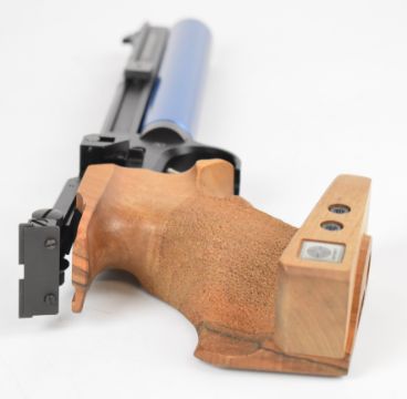 Steyr Sport LP 50 Match .177 PCP target air pistol with shaped and textured wooden grip stamped 'M' and adjustable trigger and sights, serial number 815363, in original fitted carry case with three spare cylinders, barrel weights, accessories and instruction booklet