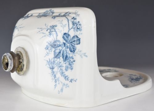 Johnson Brothers Victorian transfer printed hand basin with decorative splashback, W29.5 x D22 x 40cm