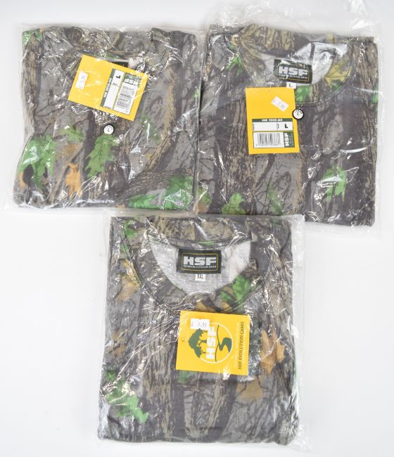 Ten HSF Evolution Camo long sleeved camouflage t-shirts, sizes S-XXL, all unworn in original packaging.