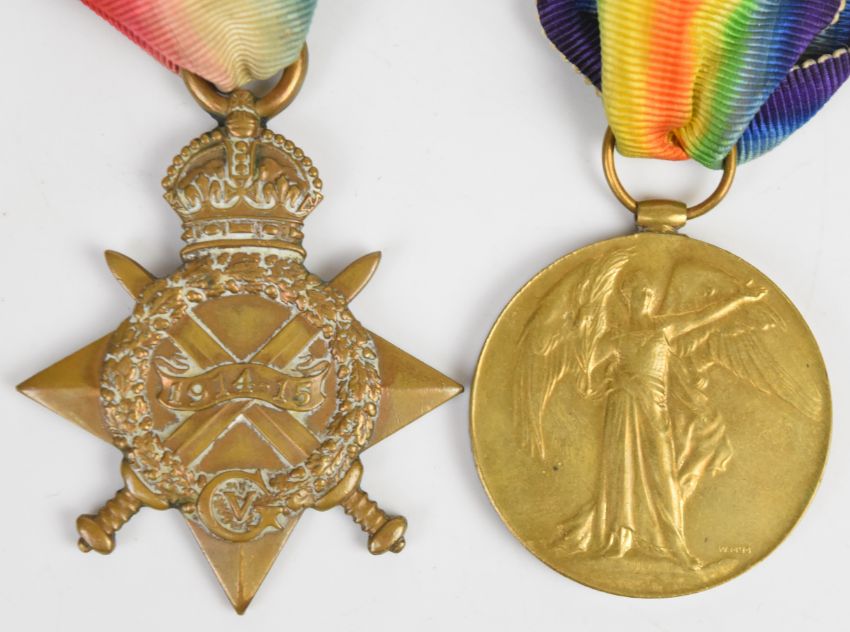 British Army WW1 medal pair comprising 1914-1915 Star and Victory Medal named to 3475 Pte J T Parkin, Cameron Highlanders