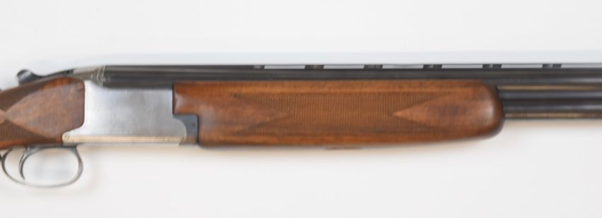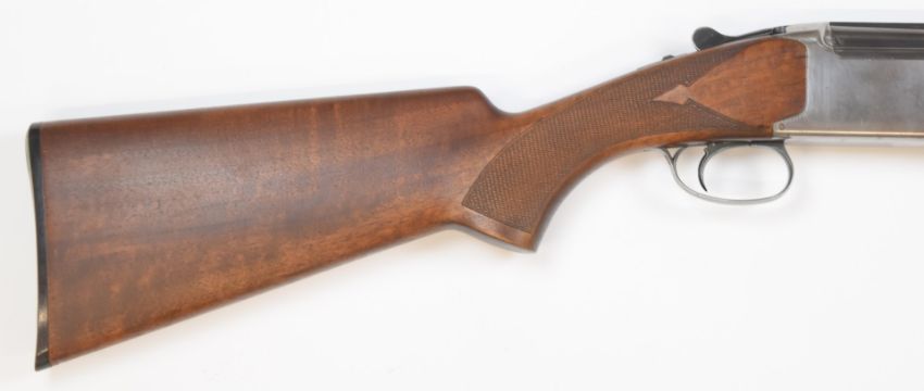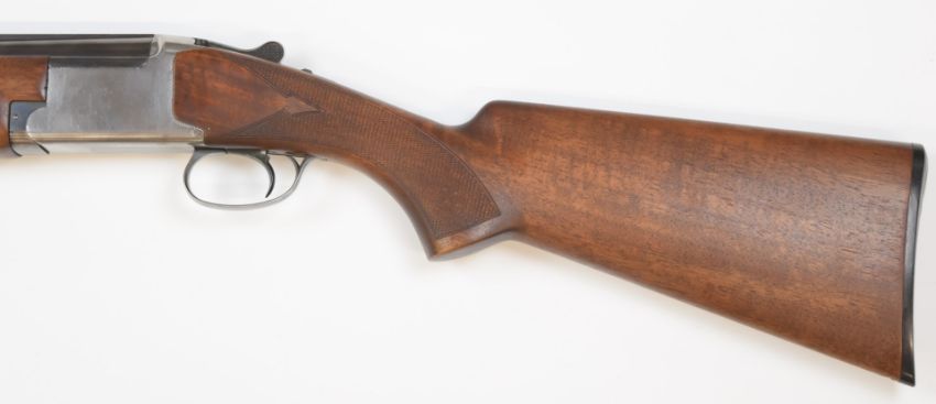 Browning B26 12 bore over and under ejector shotgun with border engraved lock and underside, chequered semi-pistol grip and forend, single trigger, vented top rib and 28 inch barrels choked ½ and ¾, overall length 114cm, length of pull 36cm, serial number 73J09057. PLEASE NOTE THAT A VALID RELEVANT FIREARMS/SHOTGUN CERTIFICATE IS REQUIRED TO HANDLE/PURCHASE THIS ITEM.