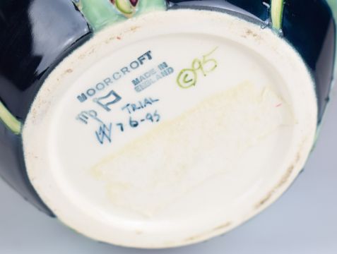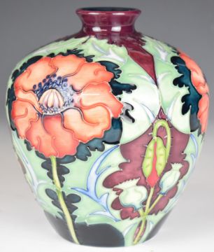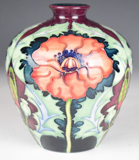 Moorcroft pottery baluster trial vase with large poppy decoration, 1995, height 17.5cm