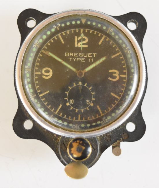 Breguet Type 11 aircraft cockpit clock, with time of trip or similar mechanism, similar in style to the Junghans clocks fitted to German Luftwaffe aircraft of WW2