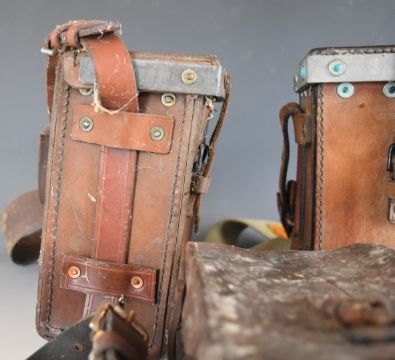 Three leather Vickers .303 machine gun magazine pouches, all with shoulder straps and dated 1944-1945.