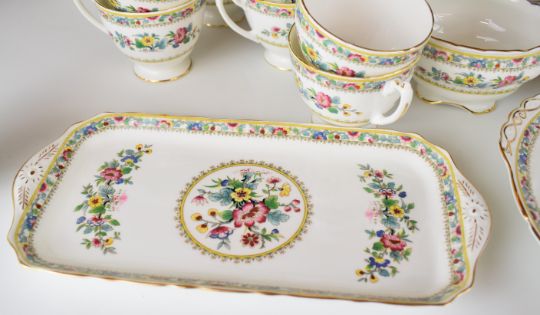 Foley tea set (later Shelley) decorated in the Ming Rose pattern, approximately 50 pieces, tallest 19cm