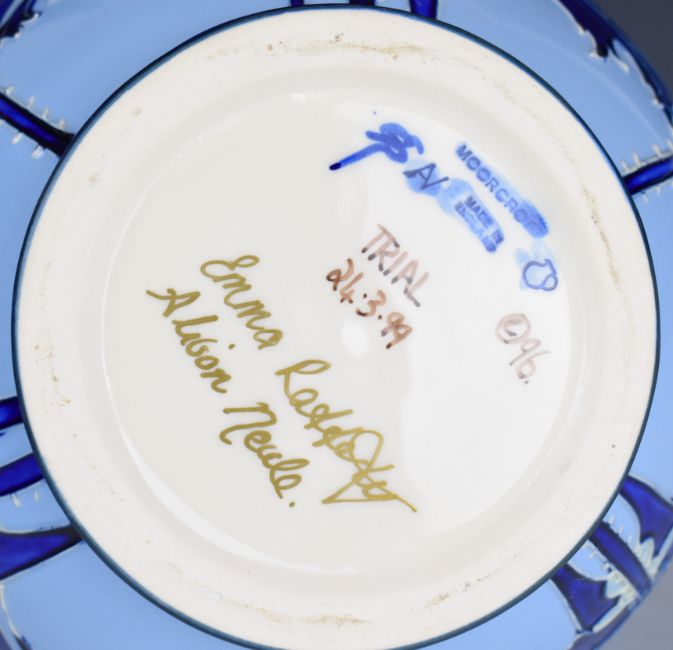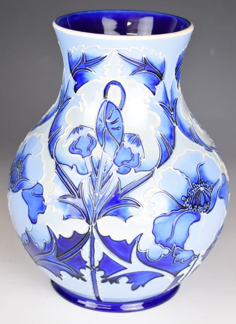 Moorcroft pottery pedestal baluster trial vase decorated in the Florian pattern, signed by Emma Radderley and Alison Neale 1999, height 24cm