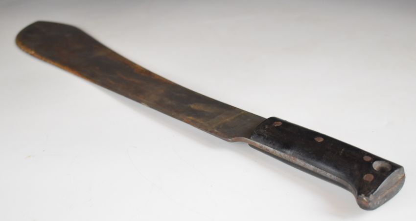 WW2 American machete marked Collins & Co, Made in US, number 1250, 1940, blade length 38cm, with leather sheath. PLEASE NOTE ALL BLADED ITEMS ARE SUBJECT TO OVER 18 CHECK ON COLLECTION OR DELIVERY