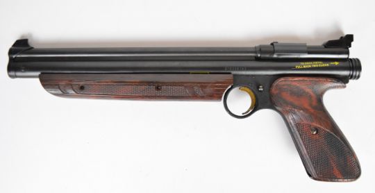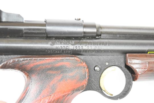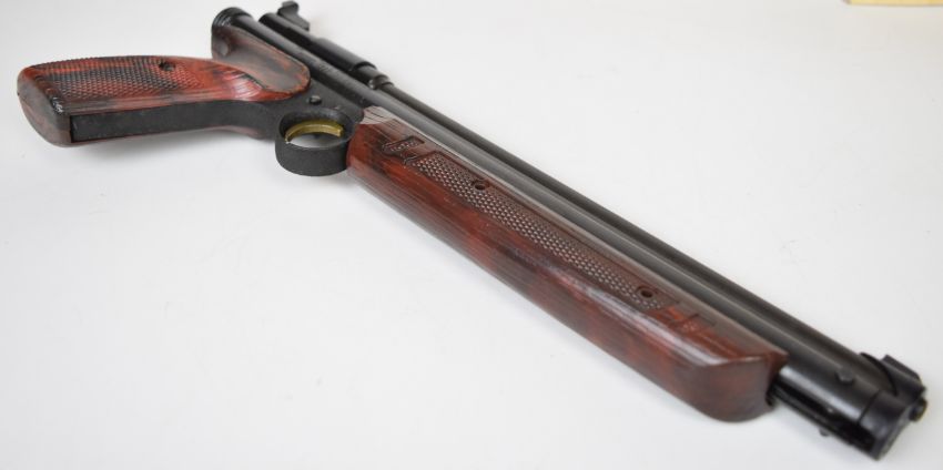 Crosman Model 1322 Medalist .22 target air pistol with shaped and chequered composite grip and adjustable sights, serial number 179032743, in original box.