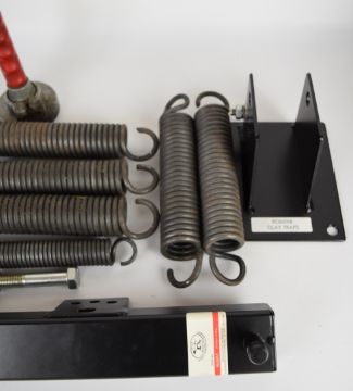 A collection of clay pigeon shooting trap items comprising small clay pigeon trap, six clay pigeon trap main springs and a Webley clay launcher.