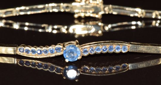A 9ct gold bracelet set with sapphires, 9.6g, 19cm