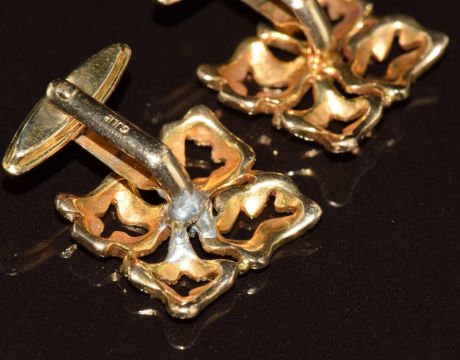 A pair of 9ct gold cufflinks with textured decoration (one soldered), 10g