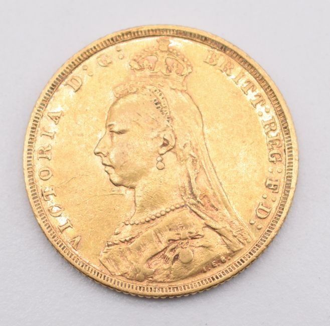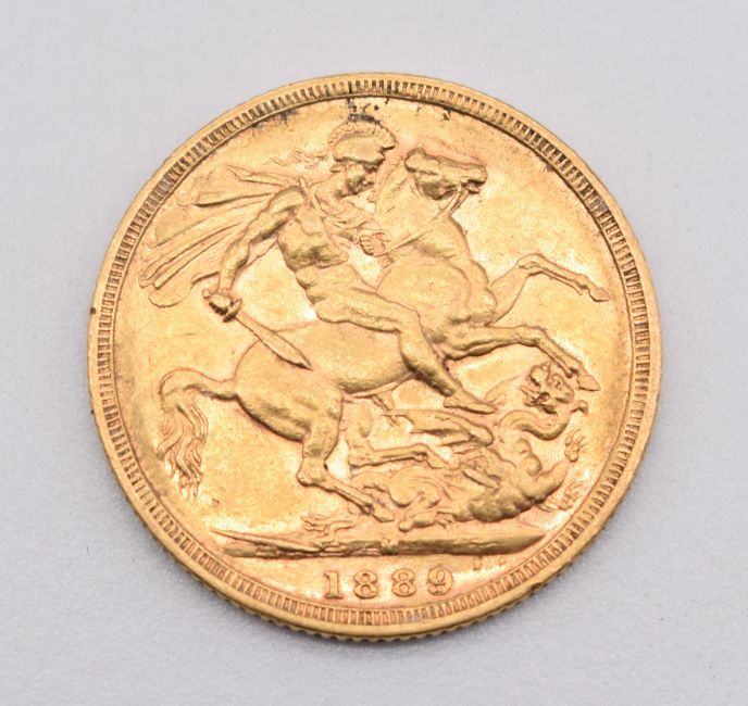 1889 Queen Victoria gold full sovereign with Melbourne Mint mark