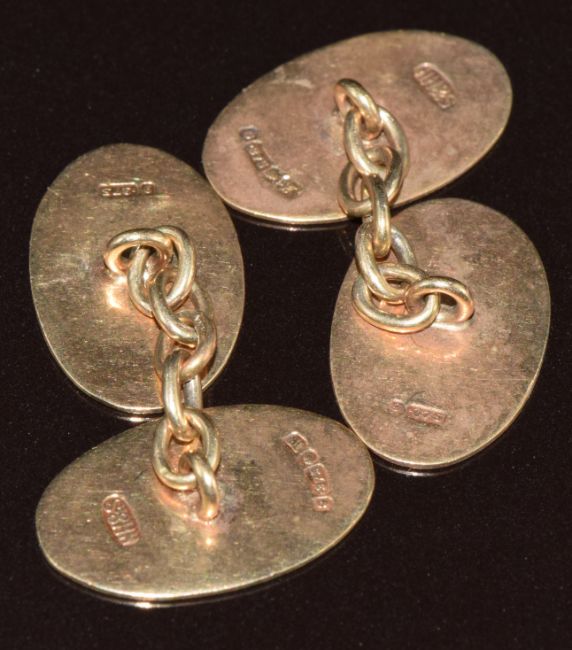 A pair of 9ct gold cufflinks with engraved decoration, 4.9g