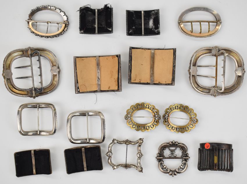 A collection of Georgian, Victorian and Art Deco buckles set with paste, including seven pairs and some white metal