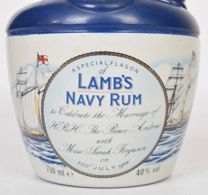 Lamb's Navy Rum ceramic flagon celebrating the 1986 Royal Wedding of Prince Andrew and Sarah Ferguson, 75cl, 40% vol. PLEASE NOTE ALL ALCOHOL & TOBACCO ITEMS ARE SUBJECT TO OVER 18 CHECK ON COLLECTION OR DELIVERY