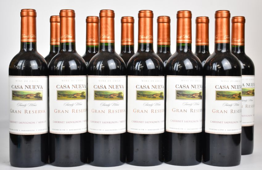 Twelve bottles of Casa Nueva Gran Reserva Cabernet Sauvignon / Merlot red wine, 75cl, 14% vol. PLEASE NOTE ALL ALCOHOL & TOBACCO ITEMS ARE SUBJECT TO OVER 18 CHECK ON COLLECTION OR DELIVERY