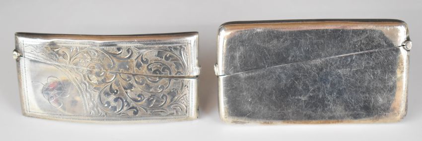 Two curved hallmarked silver calling card cases, one Birmingham 1904, maker Arthur Cook, the other with engraved decoration, Birmingham 1910, maker Turner & Simpson, length of longest 8.5cm, weight of both 74g