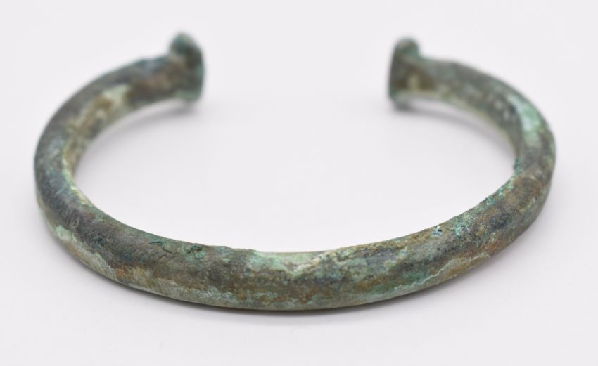 Celtic bronze bangle / tort with geometric incised decoration, diameter 7.5cm