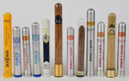 Twelve assorted cigars including Romeo y Julieta Churchill, No1, No 2, Punch Coronation and Petit Coronation, all in tubes etc PLEASE NOTE ALL ALCOHOL & TOBACCO ITEMS ARE SUBJECT TO OVER 18 CHECK ON COLLECTION OR DELIVERY