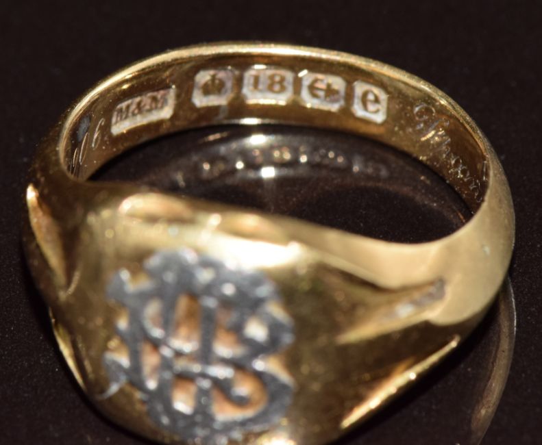 Edwardian 18ct gold signet ring engraved to inner band 'from Bessie to Fred August 8th 1906', Birmingham 1906, maker M & M, 9.7g, size L