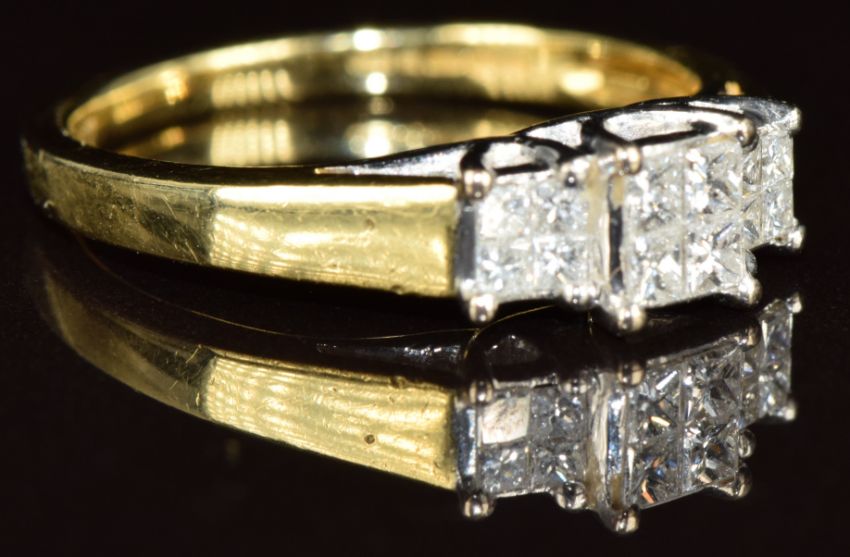 An 18k gold ring set with princess cut diamonds, the total diamond weight 0.33ct, 3.4g, size L