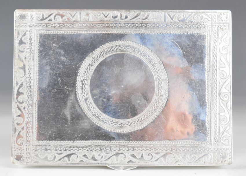 Sudanese silver box with engraved decoration to lid, width 12.5cm, weight 268g