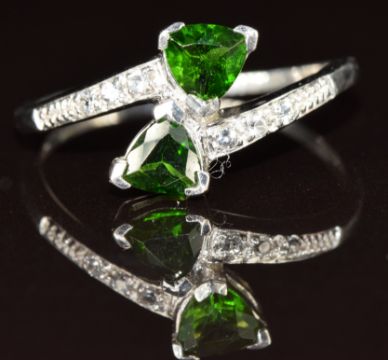 A 9k white gold ring set with Russian diopside and white topaz, 2.1g, size Q