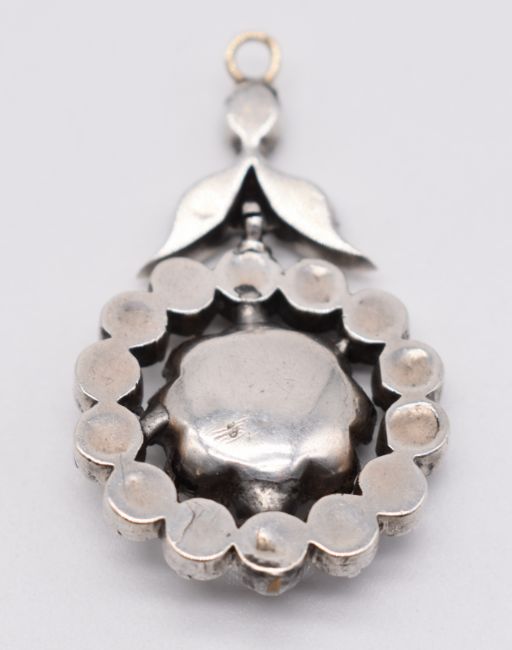 19thC silver pendant set with foiled paste, 2.2 x 4cm, 5.9g