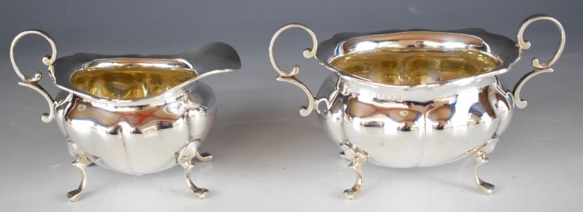 Edward VII hallmarked silver sugar bowl and milk jug, Birmingham 1903, maker George Unite & Sons, length of sugar bowl 14.5cm, weight of both 219g