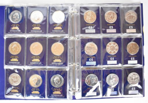 Change Checker album containing an extensive collection of UK £5 coins, some £2 examples, 50p coins etc and an A-Z set of 2019 10p coins