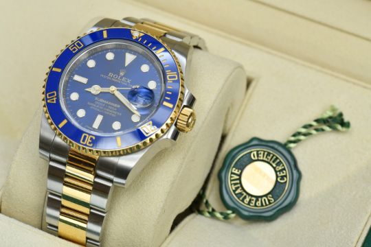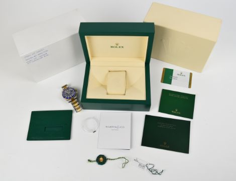 Rolex Oyster Perpetual Submariner gentleman's wristwatch ref. 116613LB with date aperture, luminous hands and hour markers, blue dial and bezel insert, stainless steel case and signed calibre 3135 movement, on bi-metal bracelet, case diameter 40mm, serial number M3N19071, 2018, in original box with guarantee, related paperwork, bezel cover, tags and outer box.