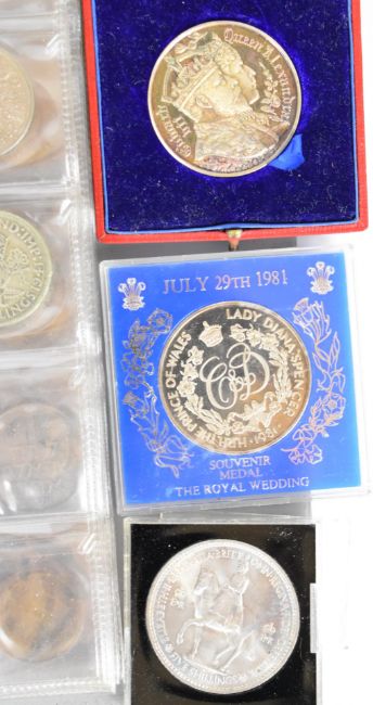 An amateur collection of UK and some overseas coinage, George III onwards, includes Georgian and Victorian crowns, mostly in an album, some loose, George III Maundy twopence, Coronation medal, Whitman folders etc