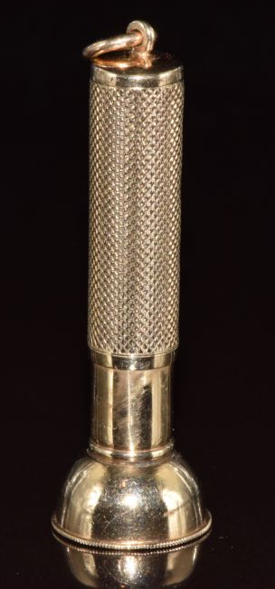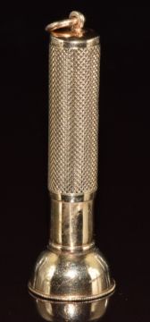 A 9ct gold cigar piercer with engine turned decoration, Birmingham 1950, 16.6g, 5cm