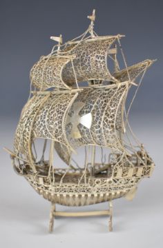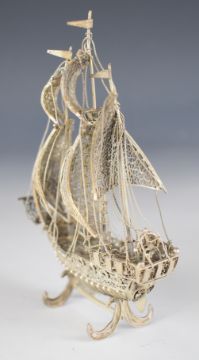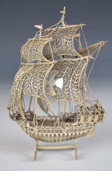 Portuguese or similar novelty model of a sailing ship or galleon, marked to the rudder 800, height 12cm, weight 72g