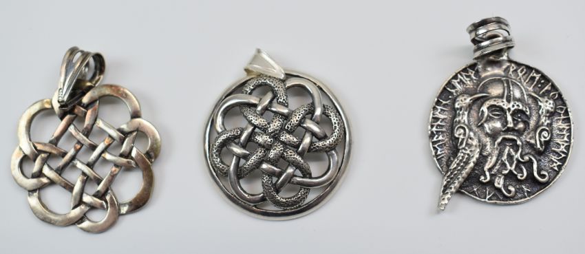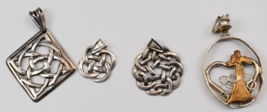 Sixteen silver pendants including nine in a Celtic design, one set with labradorite, etc