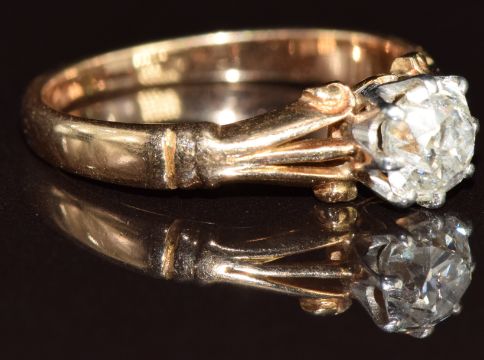 Victorian yellow metal ring set with an old cut diamond of approximately 0.5ct, 2.8g, size M