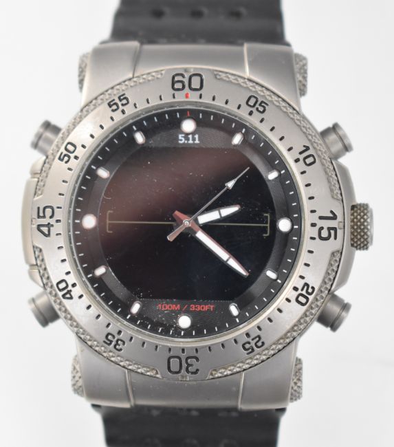 Seven military style gentleman's wristwatches including Momentum, Aeromatic, Marathon, 5.11 and MB Microtec.