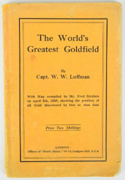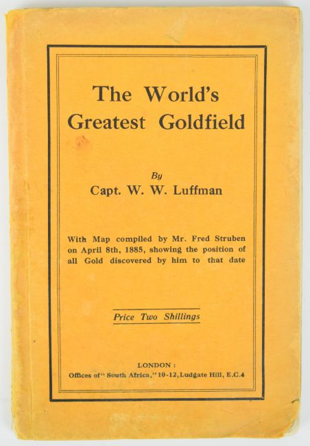 'The World's Greatest Goldfield' book by Capt W.W. Luffman, the story of Fred Struben's discovery in South Africa, including a fold out map dated 1885 showing where gold had been found