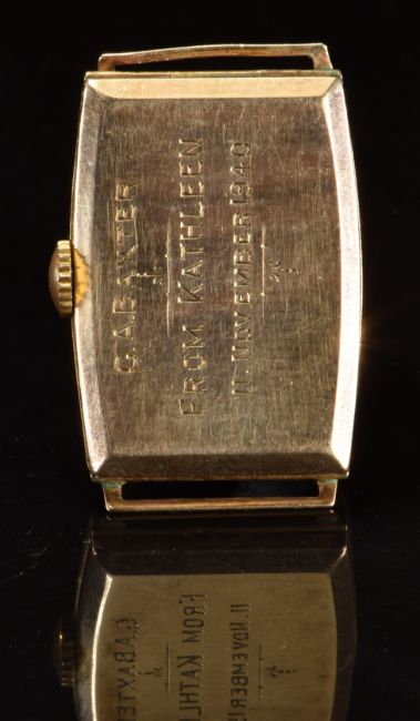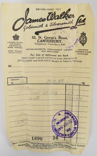 Lanco 9ct gold gentleman's wristwatch with subsidiary seconds dial, luminous hands, Arabic numerals, two-tone silver dial and 15 jewel movement, on gold plated bracelet, case diameter 22mm, in fitted box with purchase receipt dated 1940.
