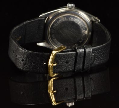 Tudor Oyster Prince gentleman's automatic wristwatch ref. 7965 with two-tone hands, steel hour markers and Arabic numerals, silver dial, stainless steel case marked 'Original Oyster Case by Rolex Geneva' and signed Tudor Auto-Prince 25 jewel movement, on black leather strap, case diameter 34mm, serial number 316542.