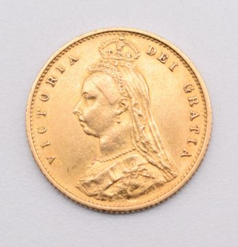 1887 Queen Victoria shield back gold half sovereign