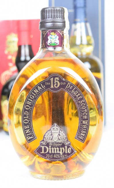 Four bottles of alcohol comprising Glen Moray Single Malt Whisky 70cl 40%, in original box, Dimple Fine Original DeLuxe Scotch Whisky, 15 years old 70cl 40%, St John Commandaria dessert wine 75cl 15%, in original box and a boxed Gran Duque D'alba Brandy, 70cl 40% PLEASE NOTE ALL ALCOHOL & TOBACCO ITEMS ARE SUBJECT TO OVER 18 CHECK ON COLLECTION OR DELIVERY