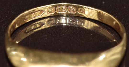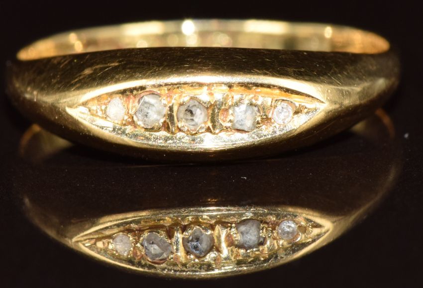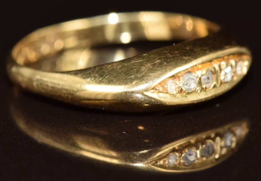 An 18ct gold ring set with a five diamonds, Birmingham 1919, 2.2g, size N
