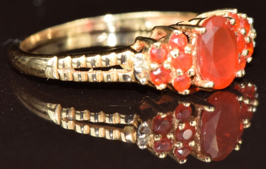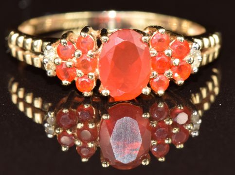 A 14k gold ring set with fire opals and diamonds, 2.6g, size R