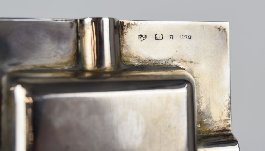 Pair of Hamilton & Co. Indian silver Art Deco ashtrays with Indian silver marks for Hamilton & Co. of Calcutta, width 9cm, weight of both 150g
